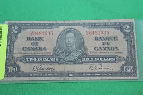 1937 BANK OF CANADA KING GEORGE $2 BILL