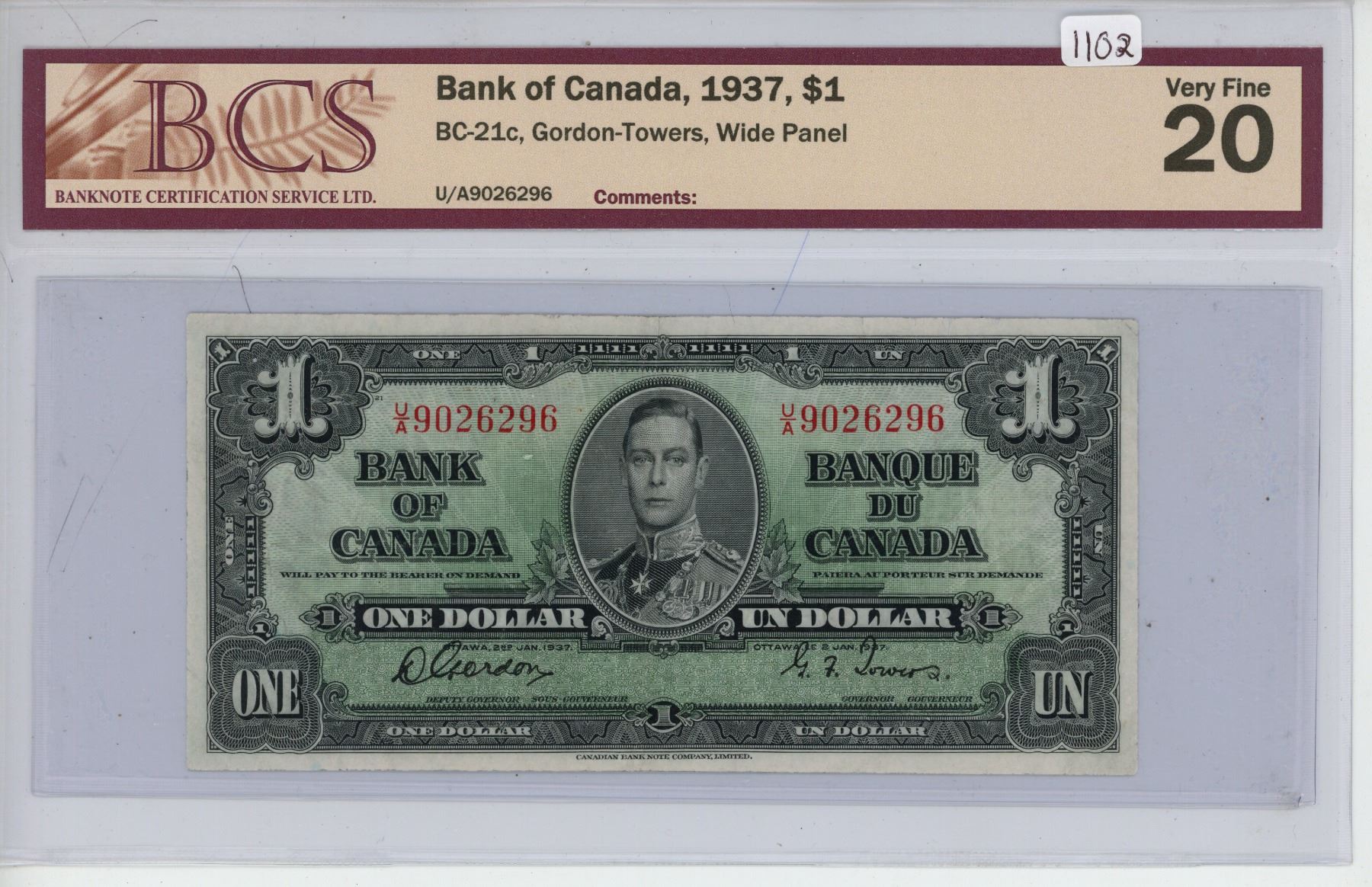 1937 BC-21c 1 dollar, Gordon-Towers, Wide Panel, U/A9026296 VF-20