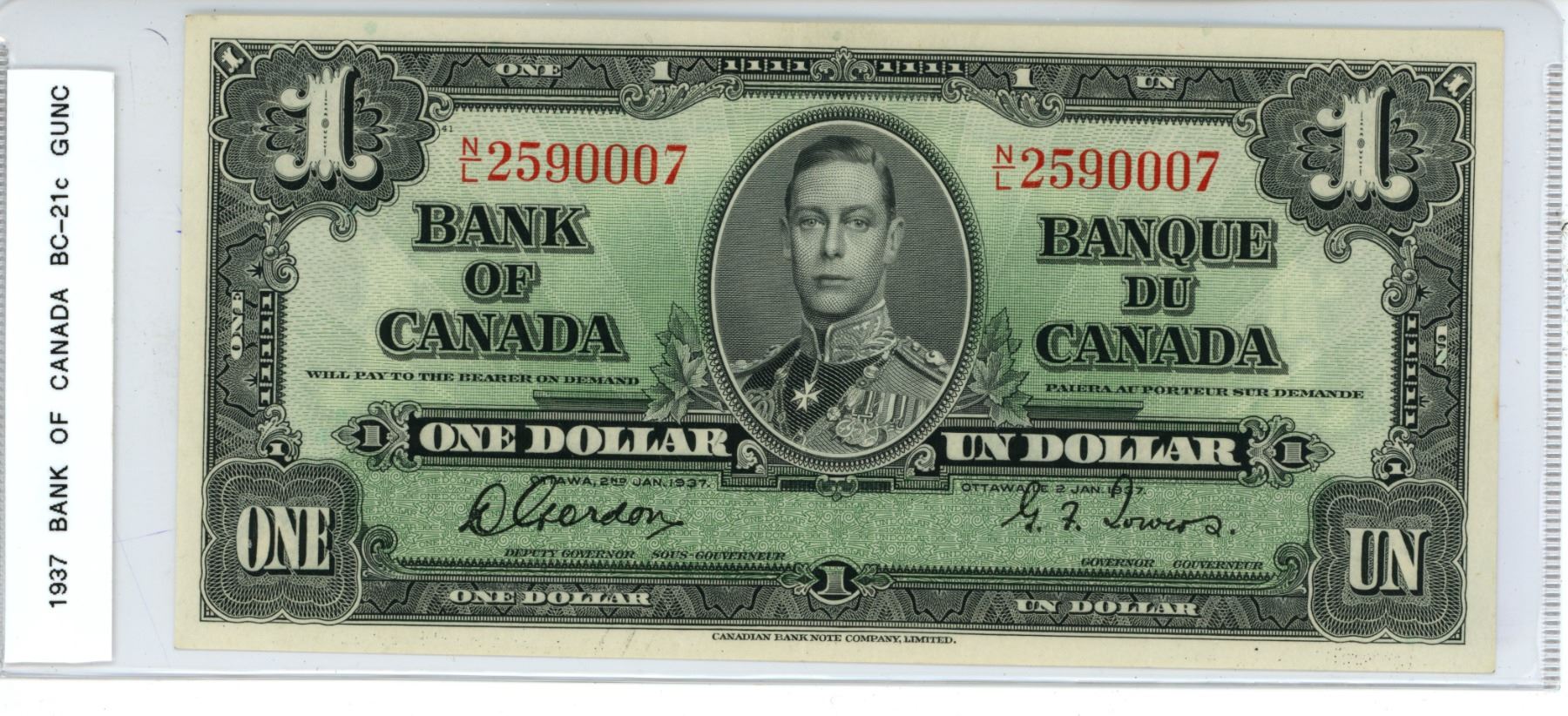 1937 BC-21c One dollar Gordon-Towers N/L2590007, CUNC