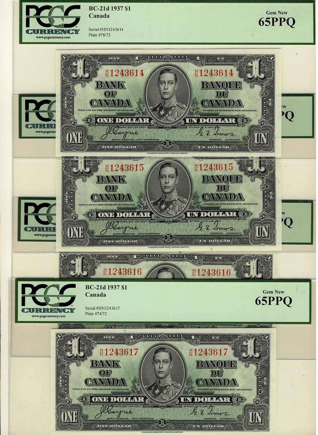 1937 $ BC-21d #HN1243614-617 PCGS Gem UNC65PPQ. Lot of 4 consecutive notes.