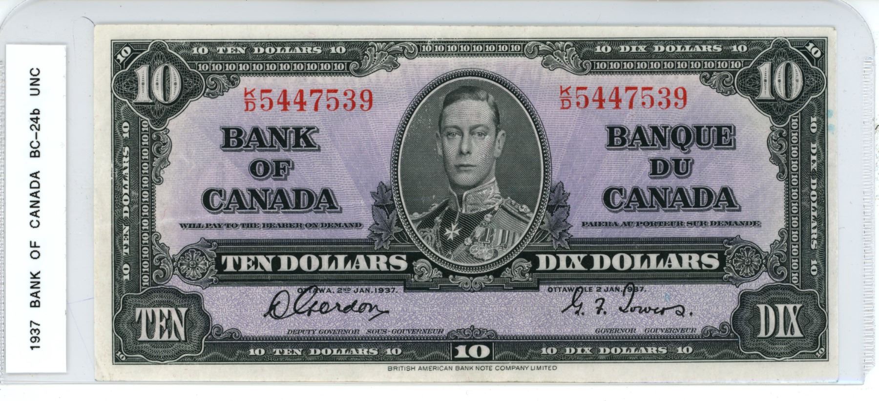 1937 BC-24b Ten dollar Gordon-Towers K/D5447539 UNC