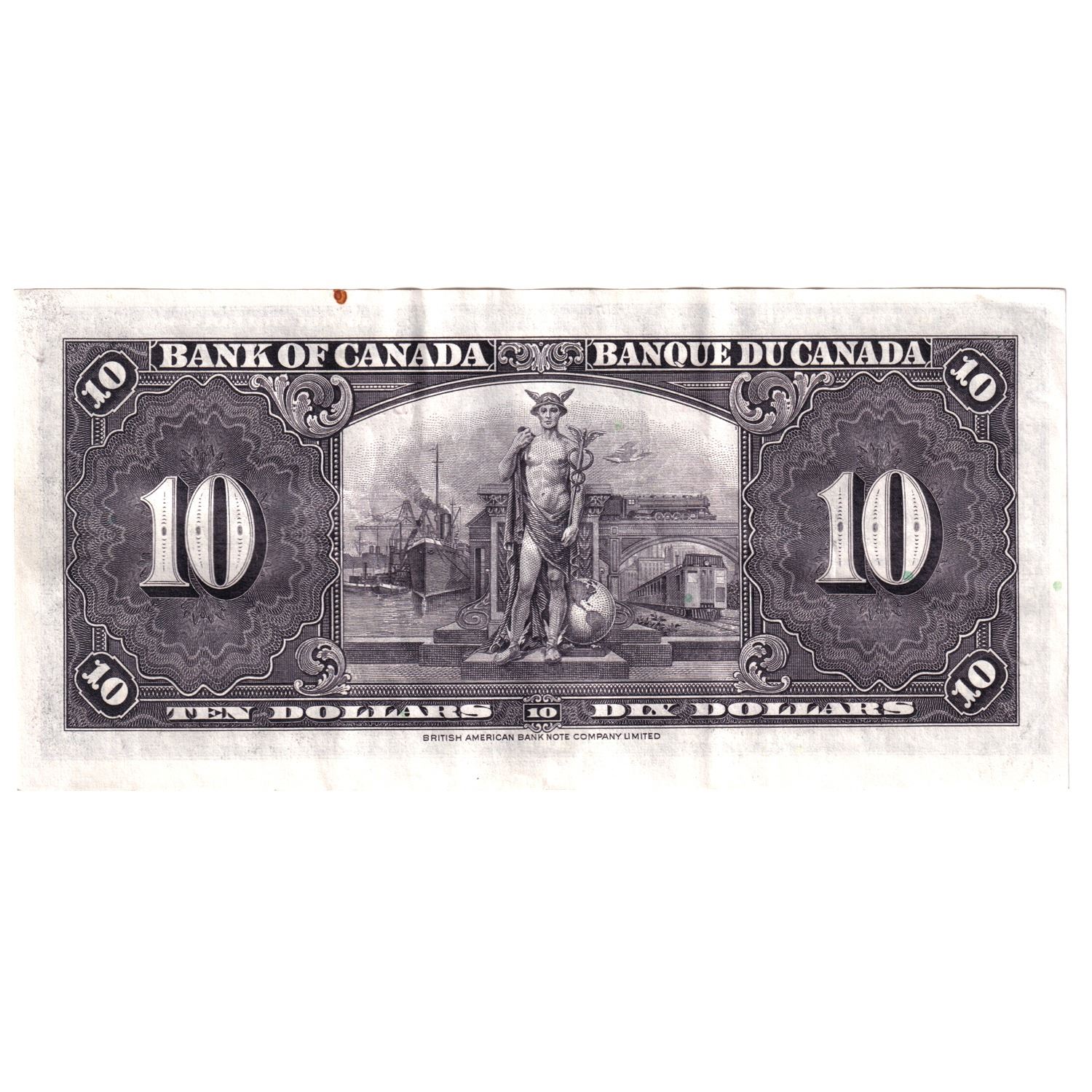 1937 BC-24d $10, Bank of Canada, Gordon-Towers, S/N: U/D1264511, EF (Small stain on top margin).