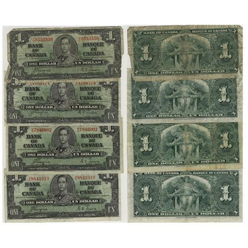 4 notes; 1xGood some tears, nicks and heavy creases; 1x VG; 1x Fine heavy centre folds; and 1xaEF offcut at top border. BC-21d, no return.