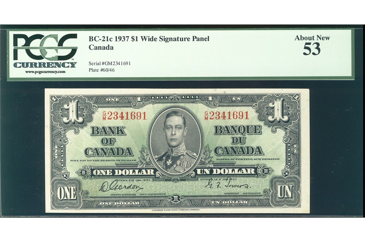 1937 Bank of Canada; 1 Dollars, BC-21c #GM2341691 PCGS AU53.