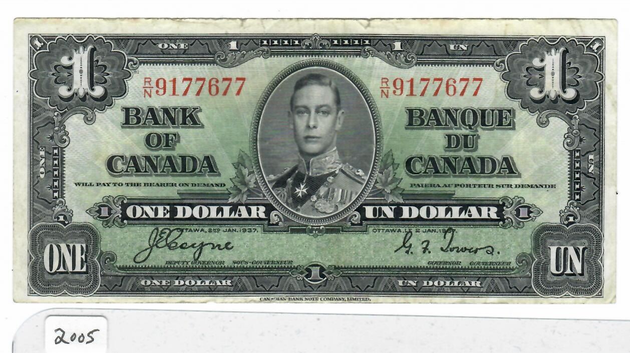 1937 Bank of Canada $1 bill
