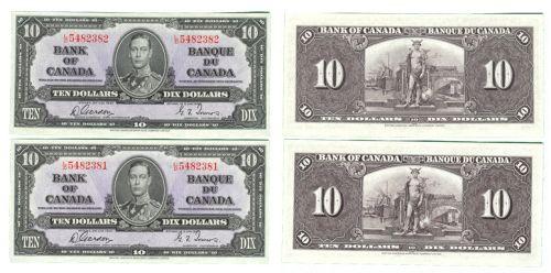 0760 - 1937 Bank of Canada $10 Sequence Pair-Unc