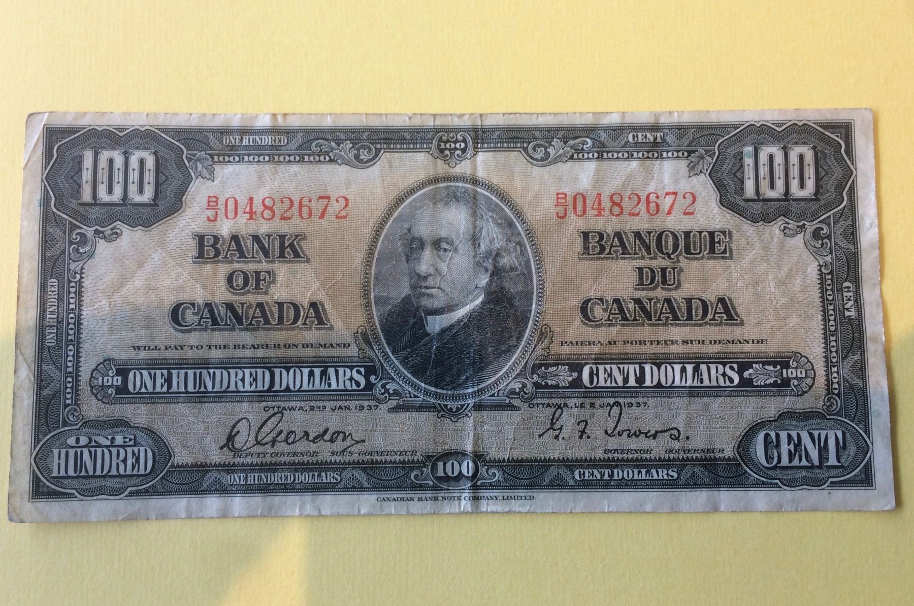 1937 Bank of Canada 100 Dollars Note, Gordon -Towers B/J0482672