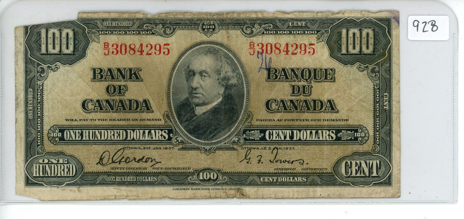 1937 Bank of Canada $100 bill