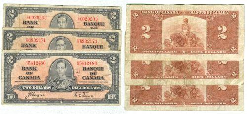 Trio, fresh well centered. Average VG circulated notes, soiled with folds and creases (1 note has a pencil mark on the front). K/R5412486, K/R6932171 & L/R0029233, Coyne-Towers BC-22c no return.