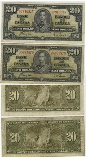 2 x Coyne-Towers variety. 1 average Fine with creases & folds, minor soiling from handling #J/E5885879. 1 x VF, well centered and fresh. Centre fold & creases, #K/E7816525 (no return) BC-25c.