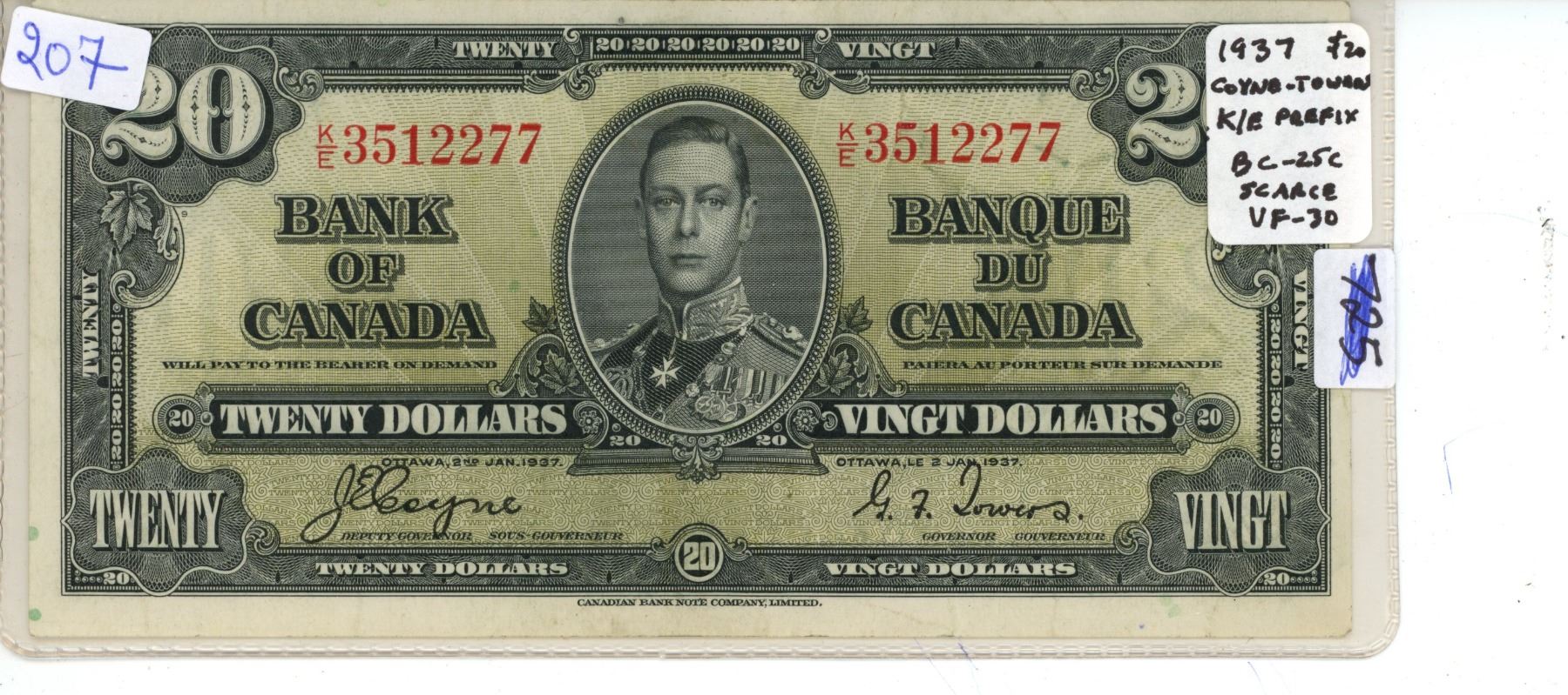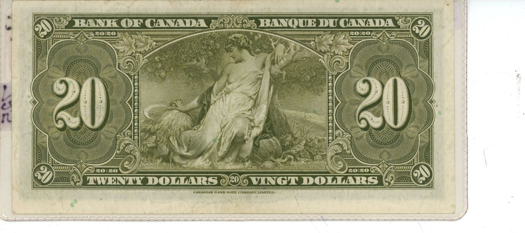 1937 Bank of Canada 20 Dollar Bill - VF-30