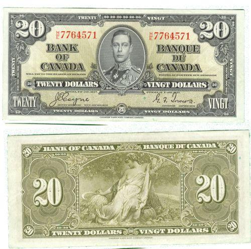 Very fresh, crisp and nicely centered. King George issue with light fold and crease. Serial #H/E7764571, Coyne-Towers signature BC-25c.