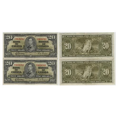Fresh well centred sequential pair. Lightly creased, serial #'s E/E9626761 and E/E9626762. Gordon-Towers, no return.