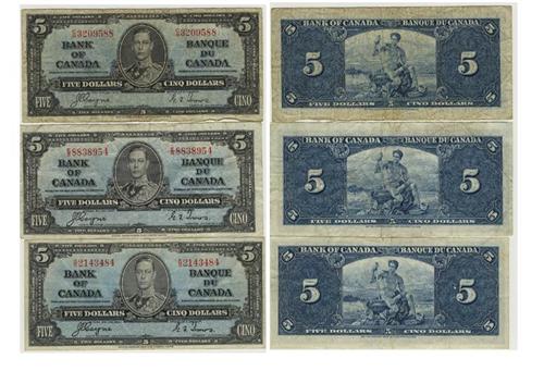1937 Bank of Canada $5.00's -VG/VF