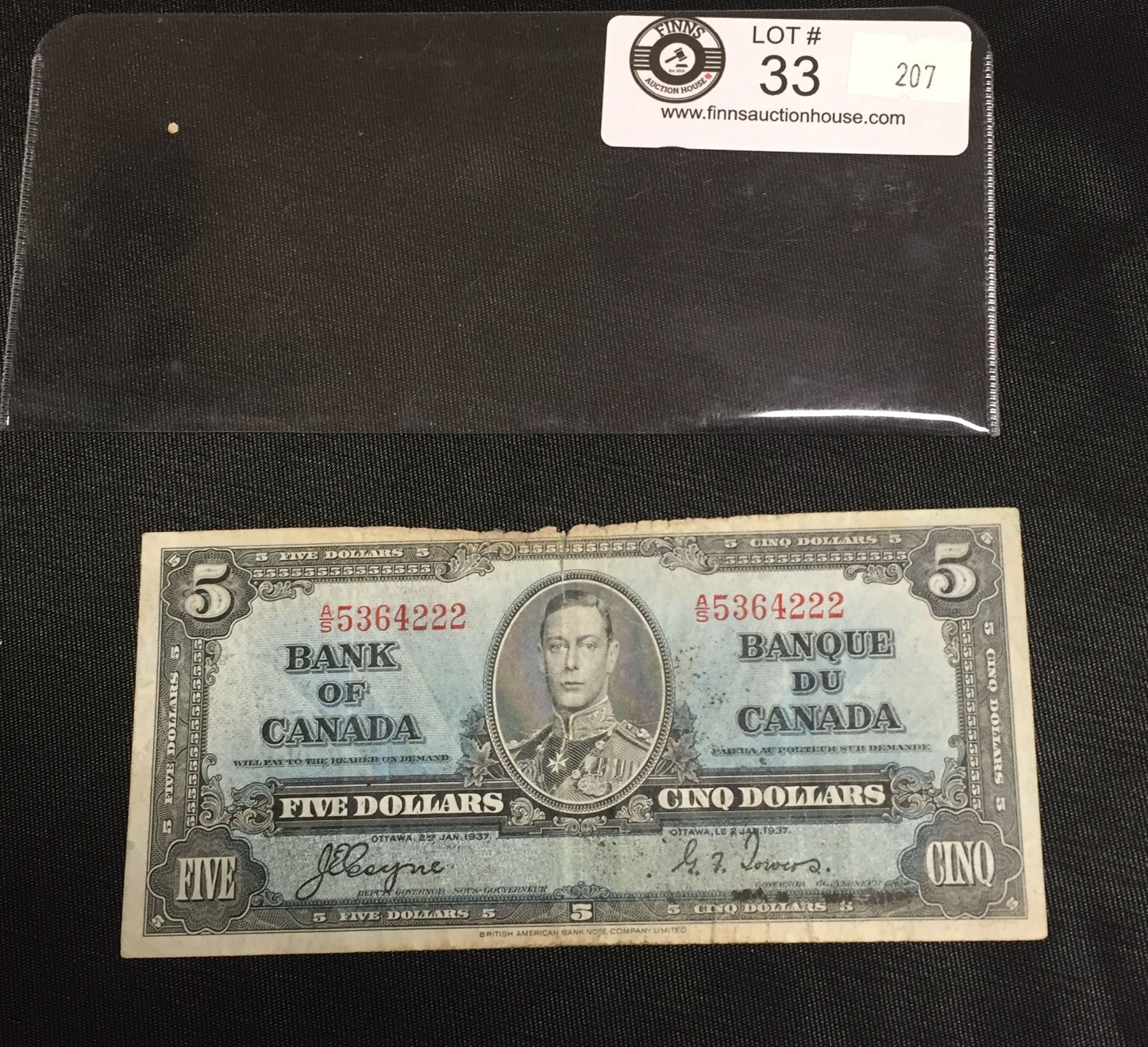 1937 Bank of Canada $5 Bank Note.