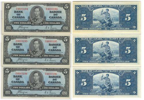 Crisp very fresh notes, 3 sequential Serial #'s D/S 4603194-4603196. Coyne-Towers, Bc-23c (no return).