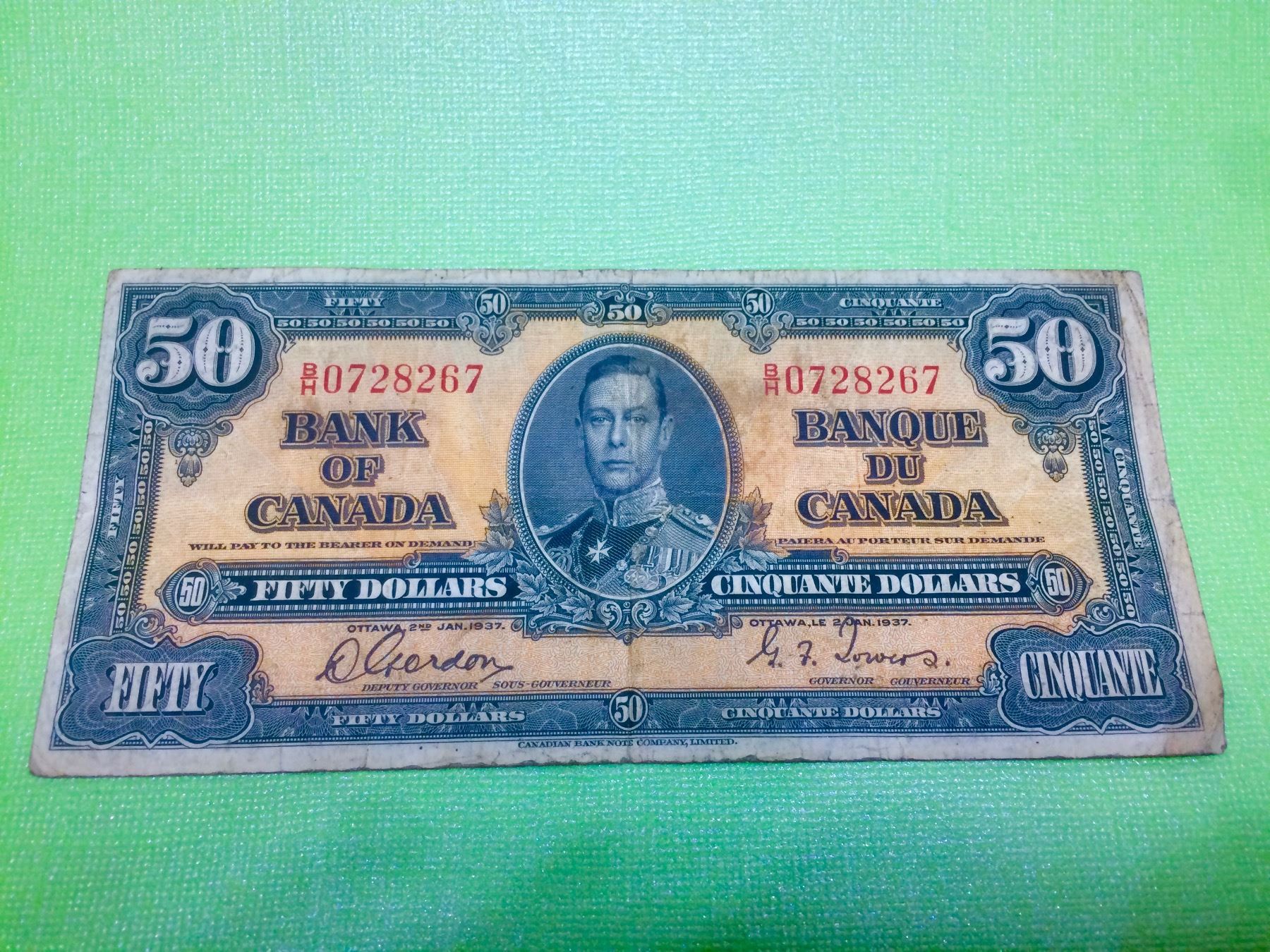1937 Bank of Canada 50$ Gordon-Towers, B/R0728267 BC-26b