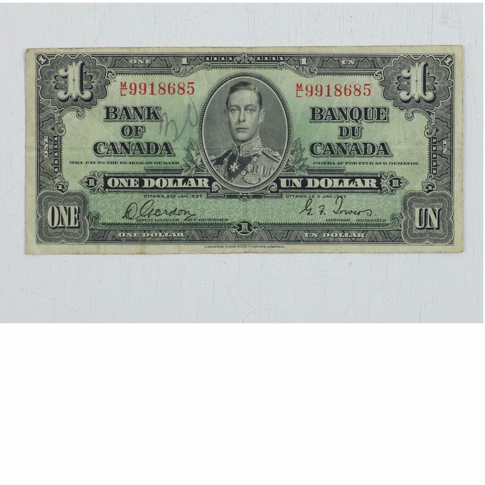 1937 Bank of Canada BC-21c $1 Gordon/Towers note M/L prefix