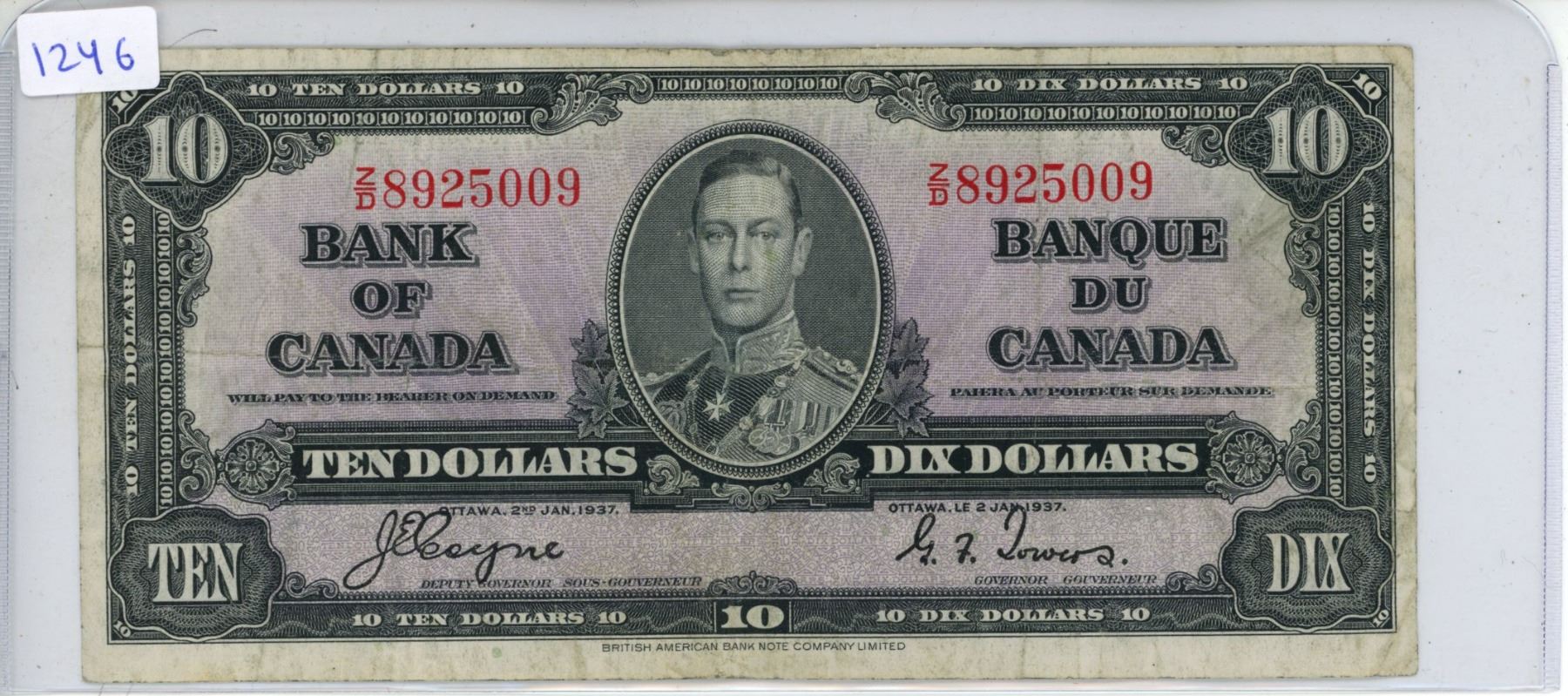 1937 Bank of Canada - Ten Dollar Note.