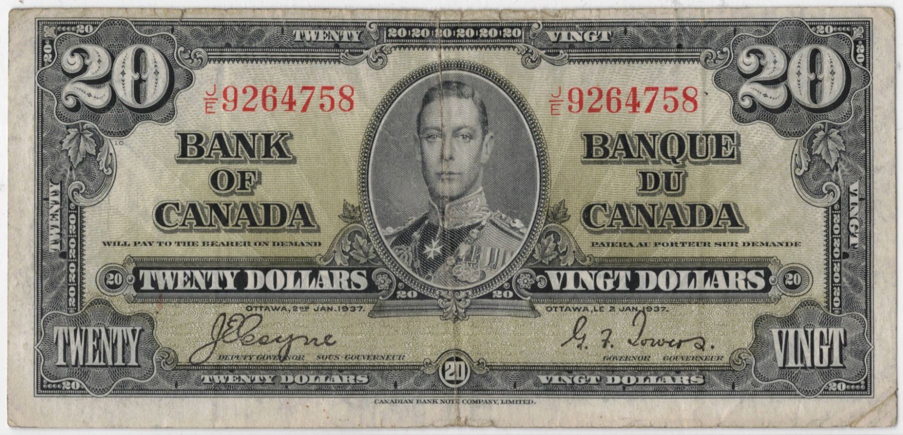 1937 Bank of Canada Twenty Dollar Bill - JE9264758