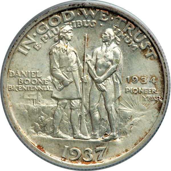 1937 Boone Half Dollar. PCGS graded MS-66. Lightly toned and a gem (PCGS # 9270) .