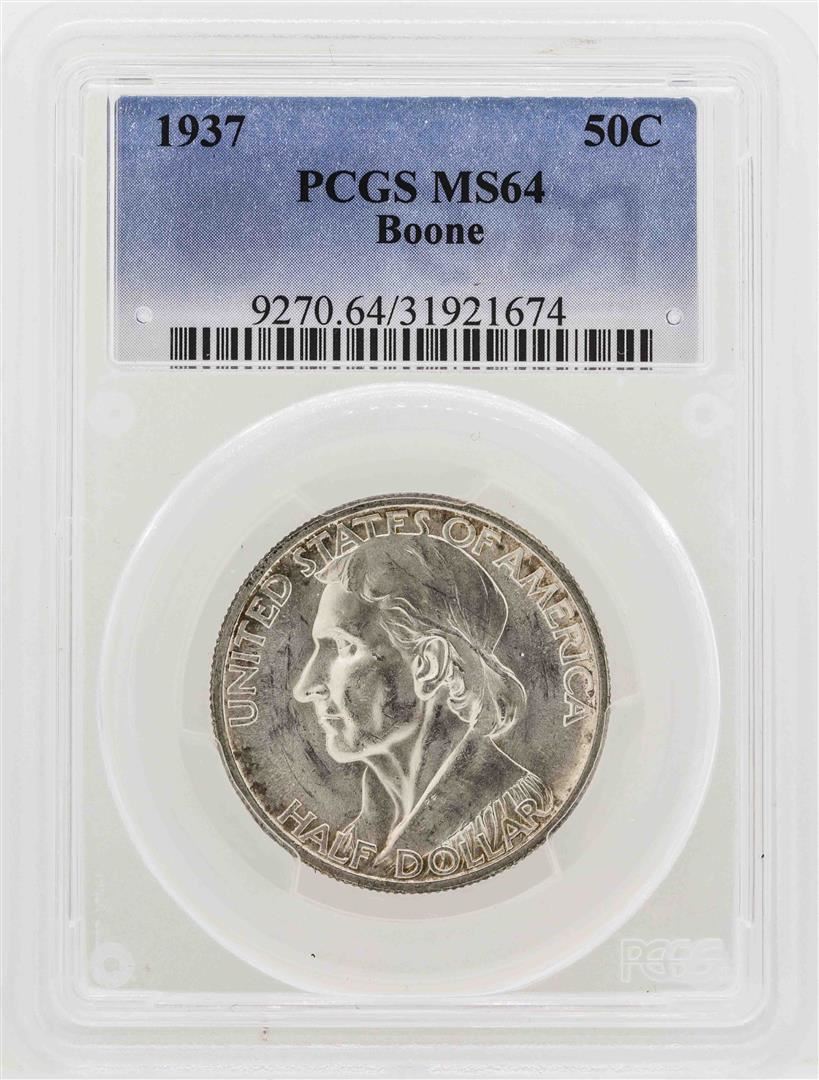 One 1937 Boone Commemorative Half Dollar Coin PCGS MS64. PCGS Graded.