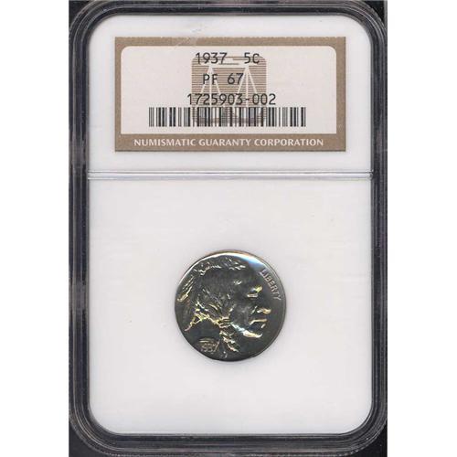 From a proof mintage of 5769. A razor-sharp strike shows every detail clearly on a brilliant proof field with a total absence of carbon spots. A singular beauty. Bids $2200