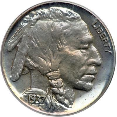 1937 Buffalo Nickel. PCGS graded Proof 65. CAC Approved. Gorgeous light rainbow toning on the obverse, the fields careening like reflective jewels! A Gem (PCGS # 3996) .