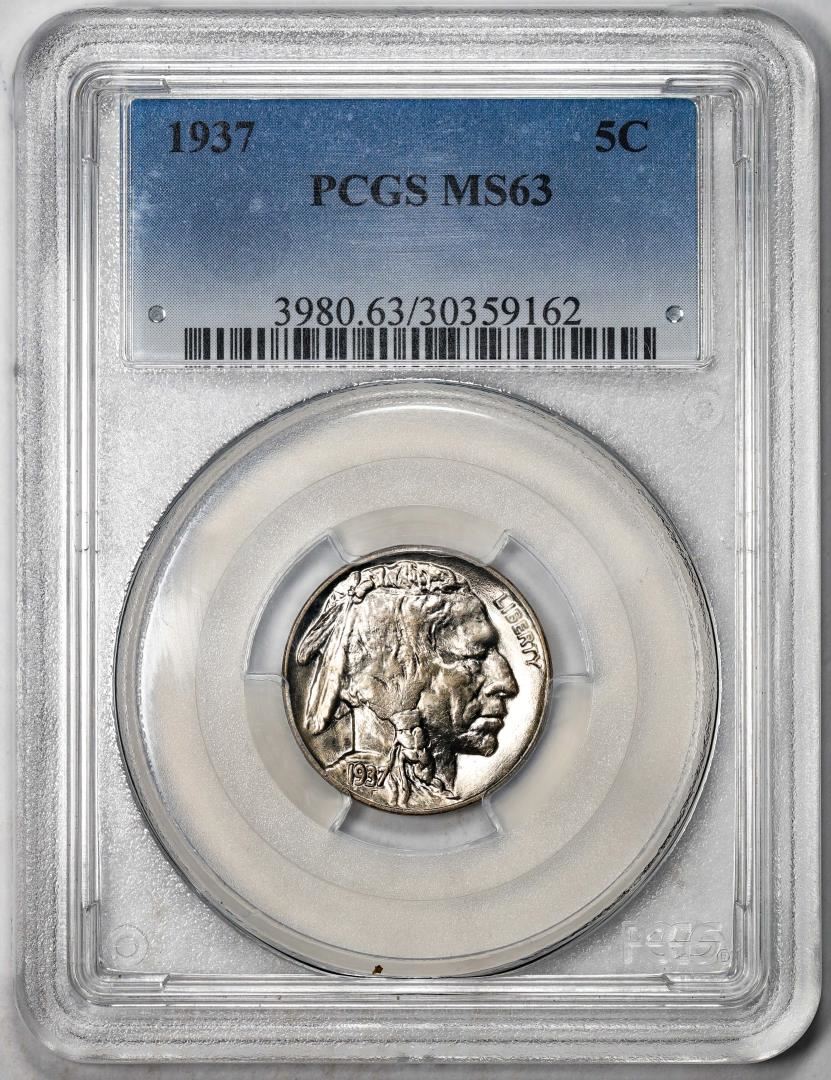 One 1937 Buffalo Nickel Cent Coin PCGS MS63. PCGS Graded.