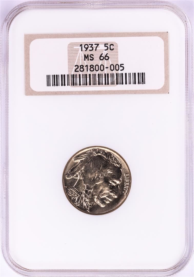 One 1937 Buffalo Nickel Coin NGC MS66 Old Fatty Holder. NGC Certified.
