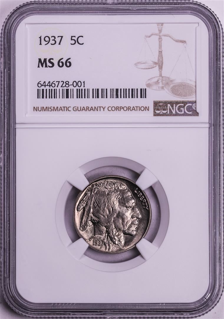 One 1937 Buffalo Nickel Coin NGC MS66. NGC Certified.