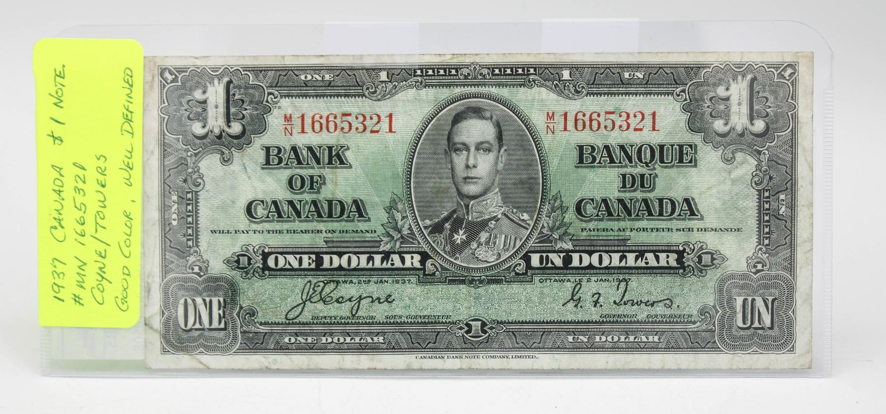 1937 CANADA $1. COYNE/TOWERS, # MN 1665321