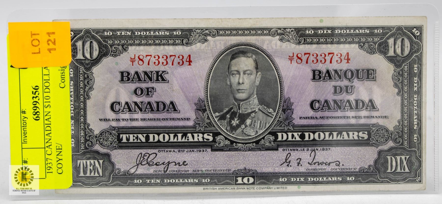 1937 CANADIAN $10 DOLLAR BILL - COYNE/