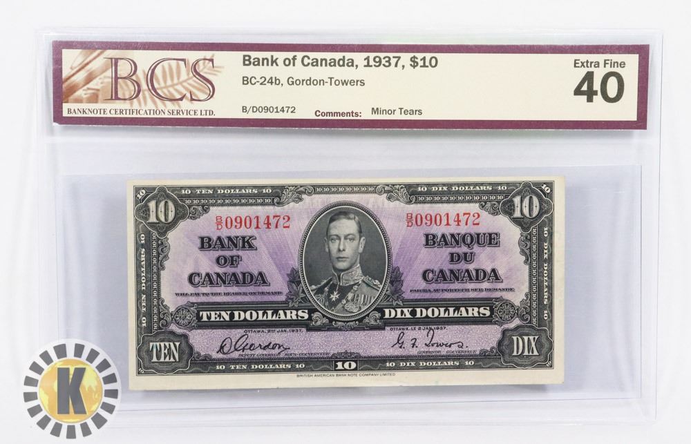 GRADED 40 EXTRA FINE BY BANKNOTE CERTIFICATION SERVICE LTD***ITEM(S) LOCATED IN LETHBRIDGE ALBERTA