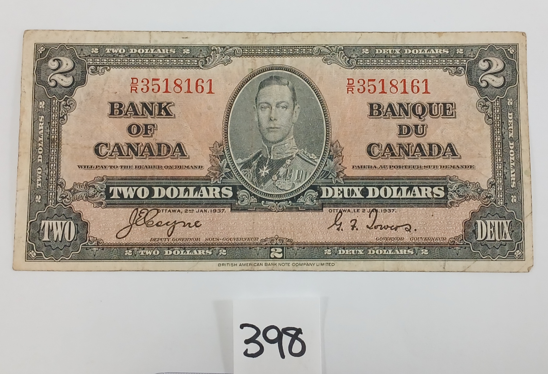 1937 CDN $2 BANKNOTE