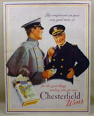 1937 CHESTRFIELD CIGARETTES ADVERTISING SIGN - Approx. 9.5" by 12.5"