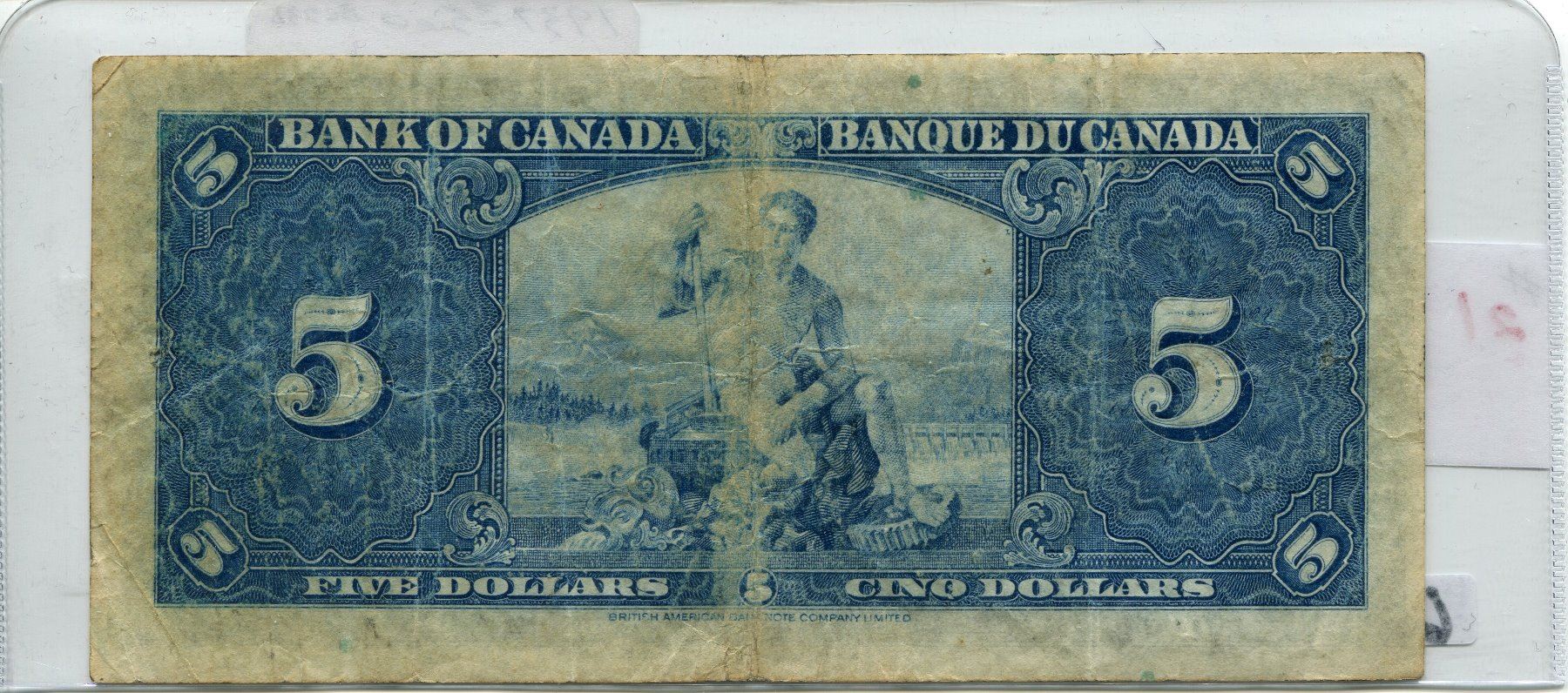 1937 CNDN GORDON TOWERS FIVE DOLLAR NOTE
