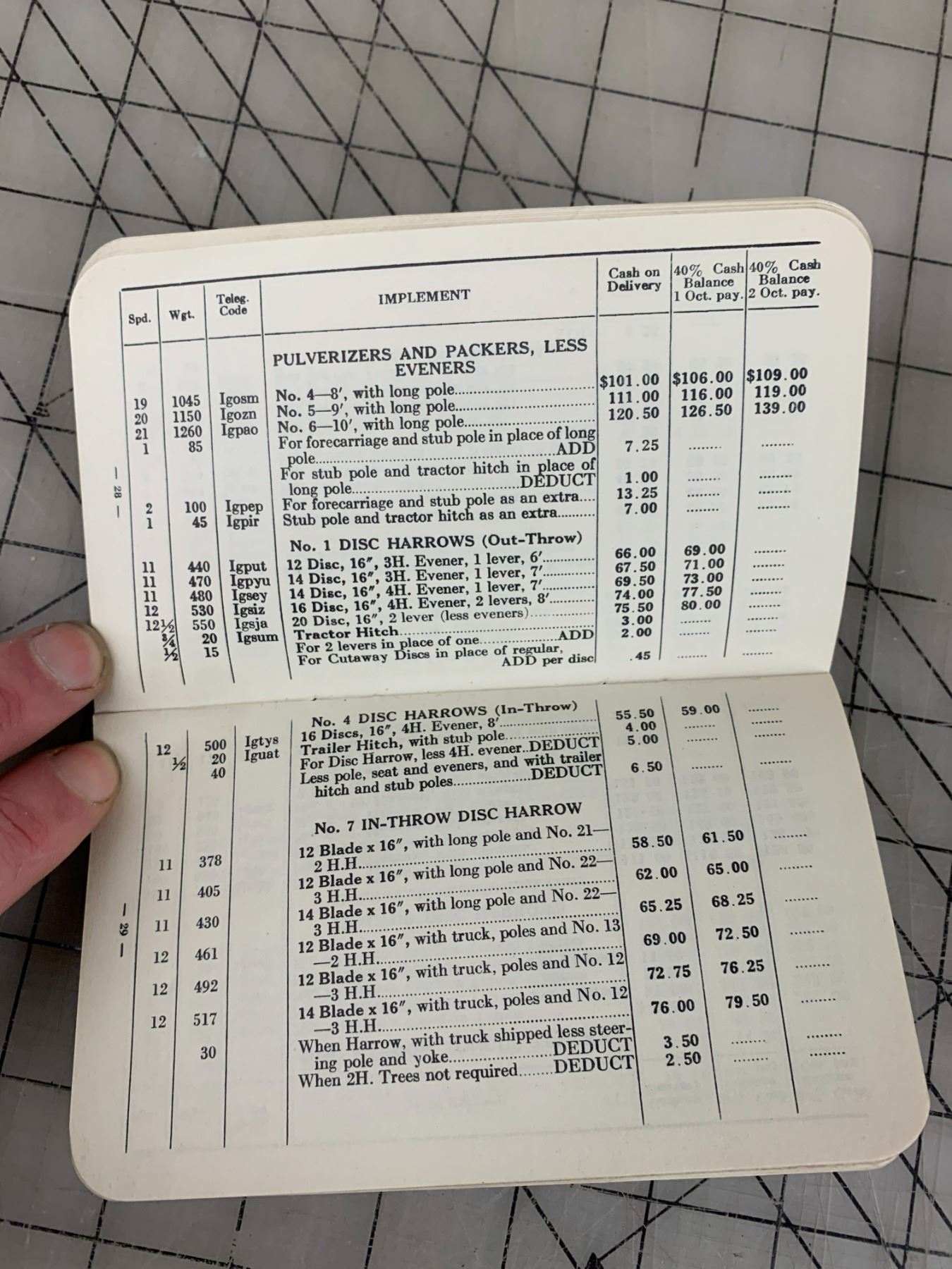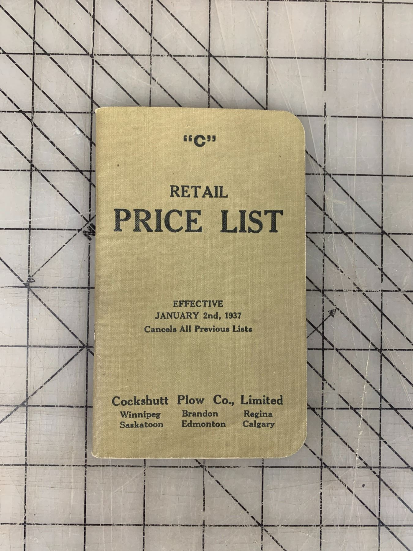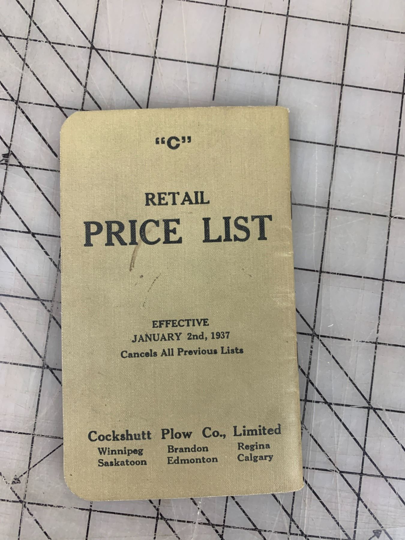 1937 COCKSHUTT PLOW COMPANY POCKET PRICE LIST