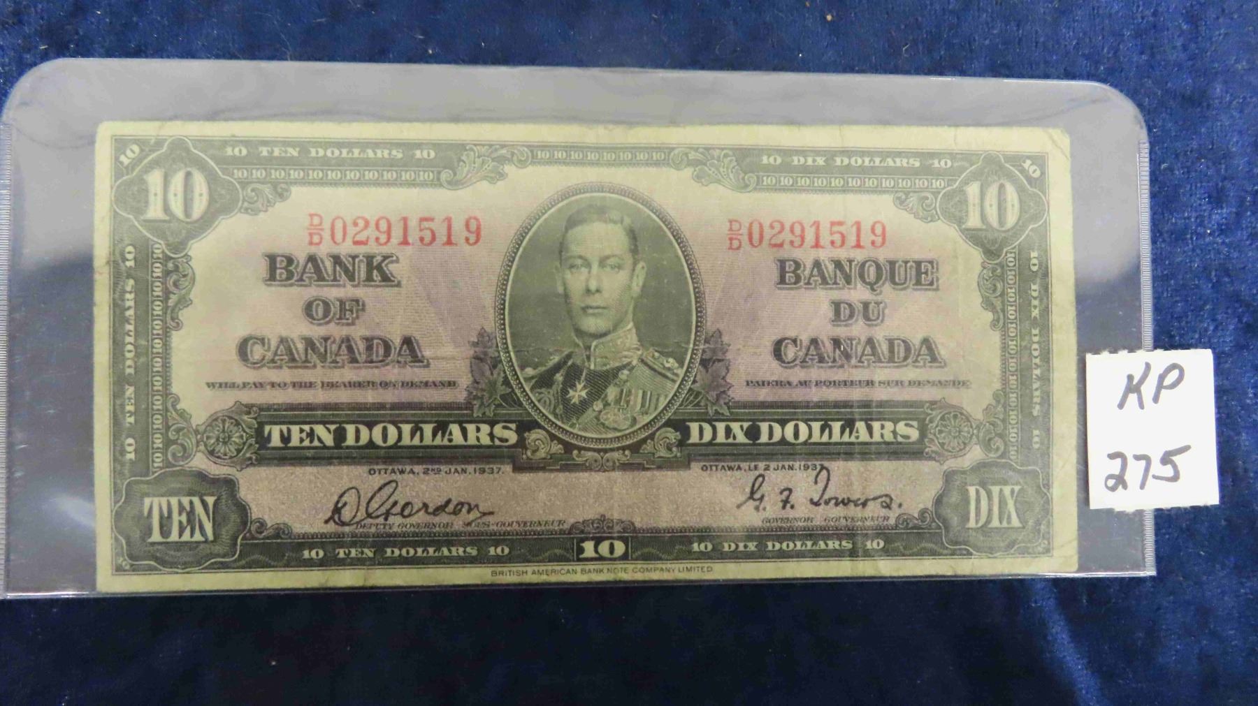 1937 Canada $10 Bill