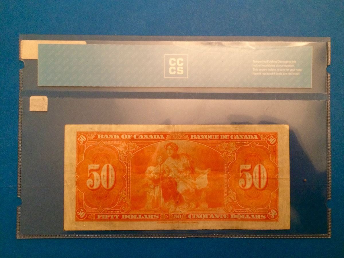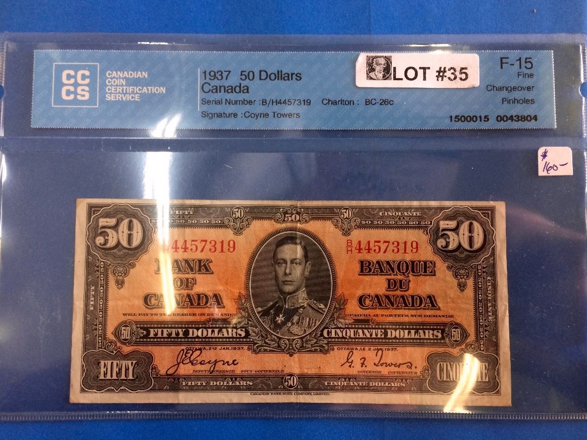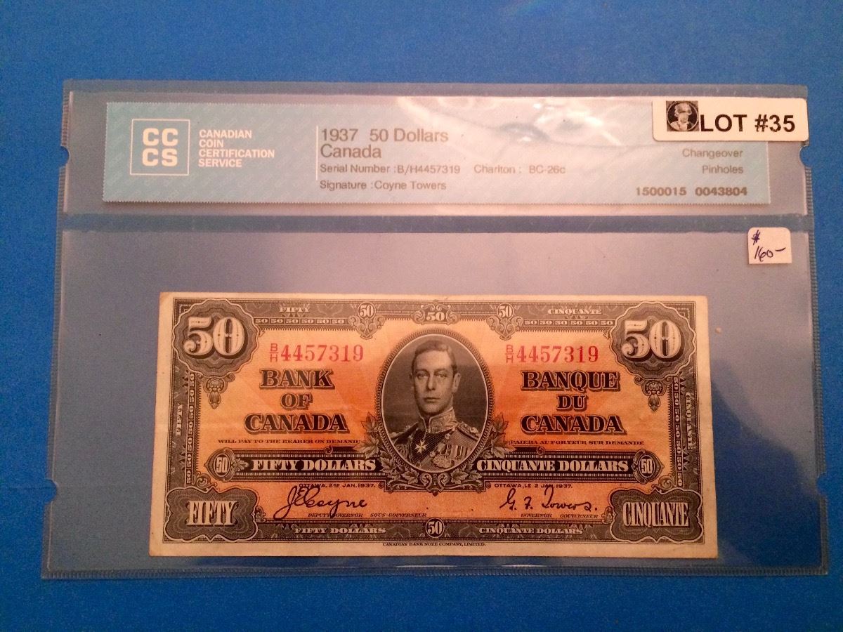 1937 Canada Banknote 50 Dollars CCCS Certified : Serial B/H 4457319 Charlton BC-26c