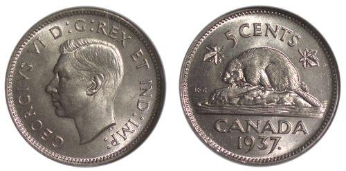 0108 - 1937 Canada Five Cents-ANACS MS66/ICCSMS65