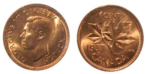0021 - 1937 Canada Small Cent-ICCS MS65Red