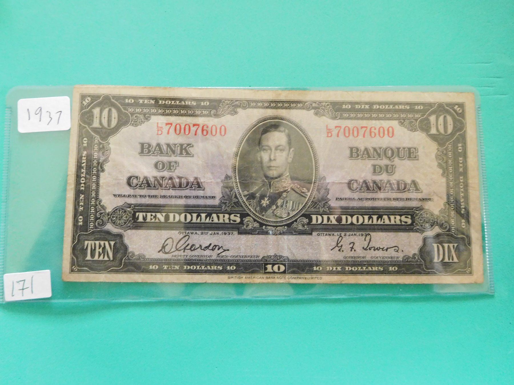 1937 Canada Ten Dollar Bill L/D7007600 Gordon/Towers