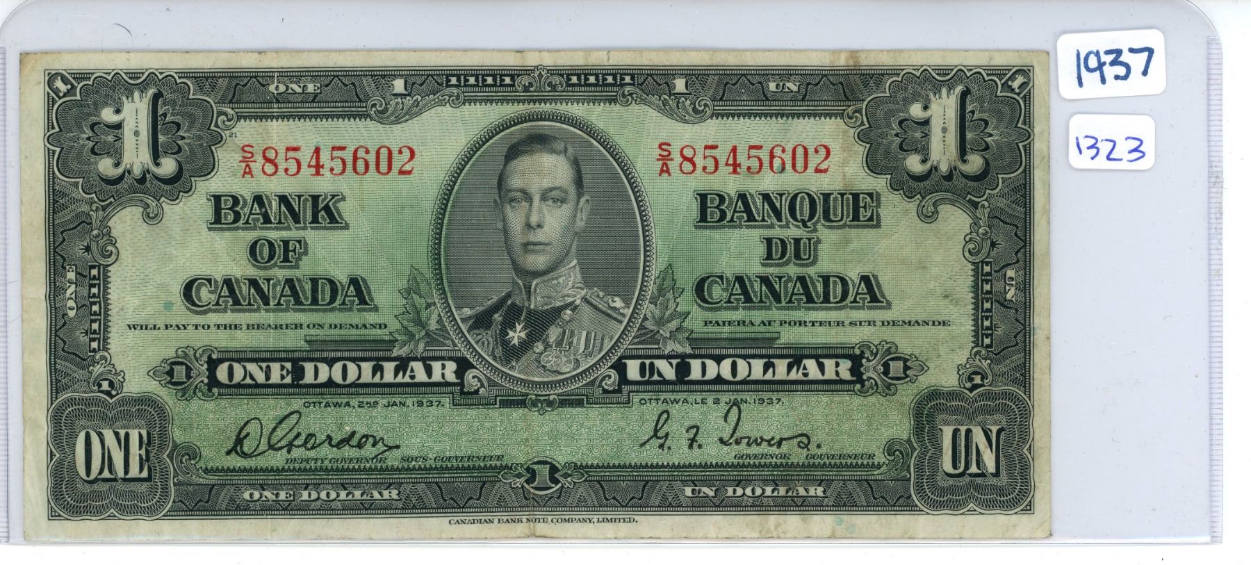 1937 Canada one dollar note