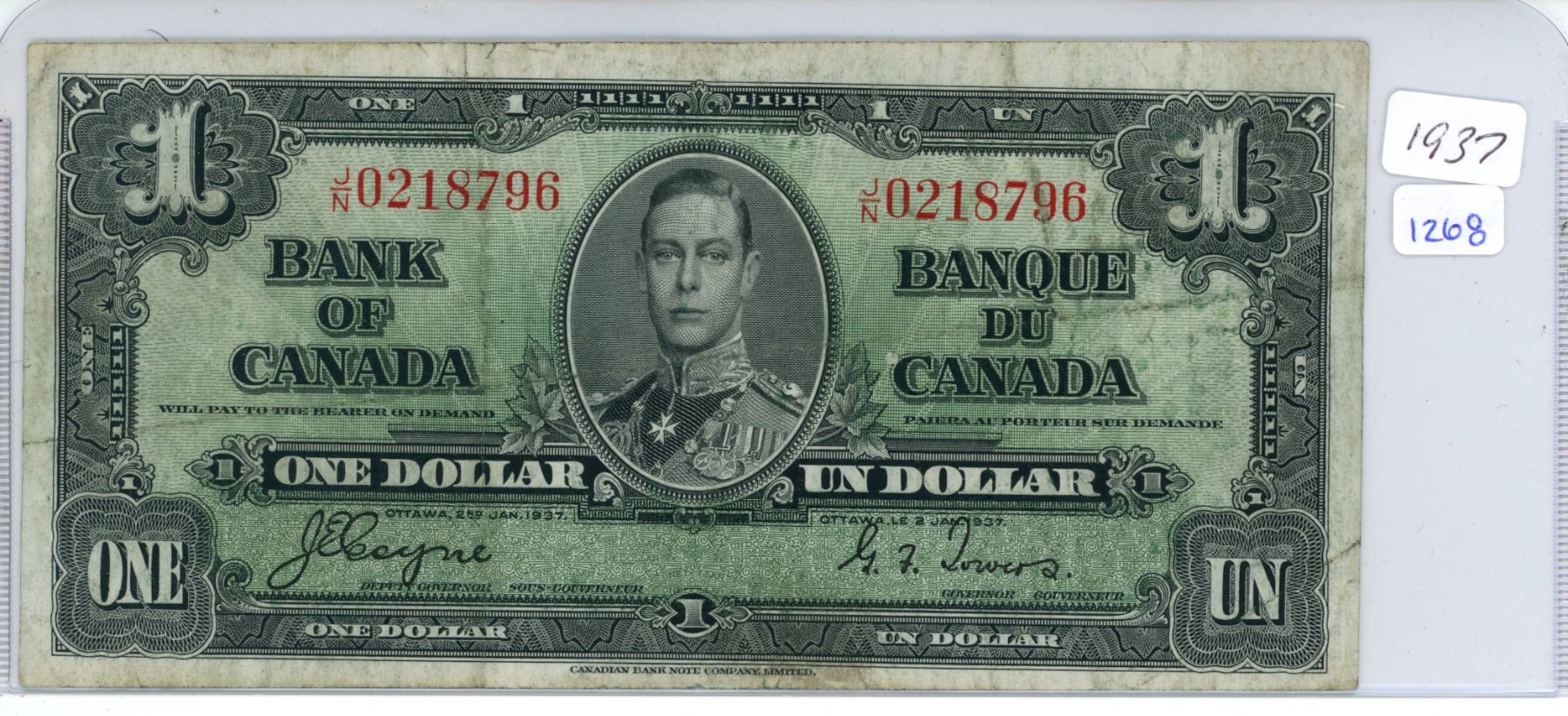 1937 Canada one dollar note
