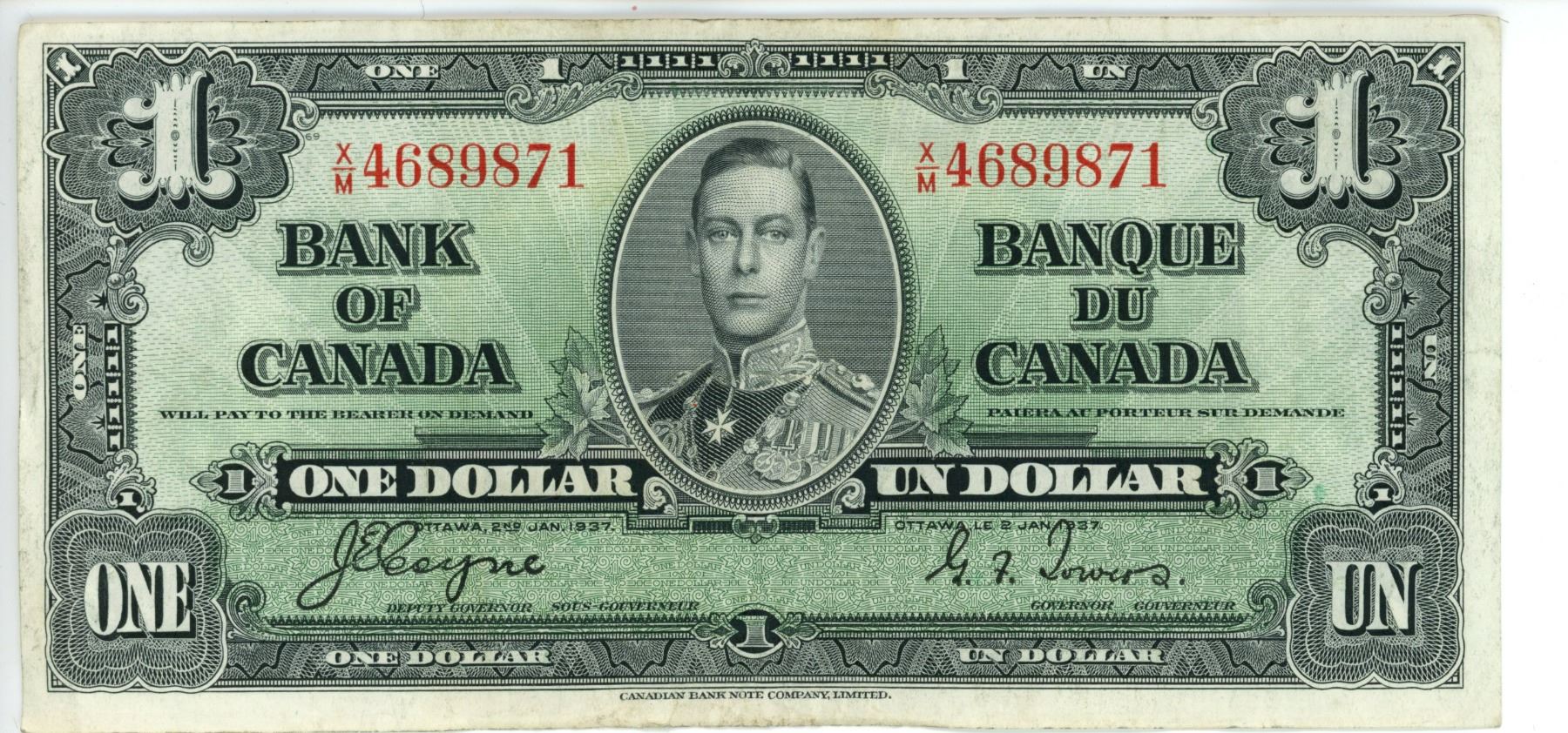 1937 Canadian 1 Dollar Bill