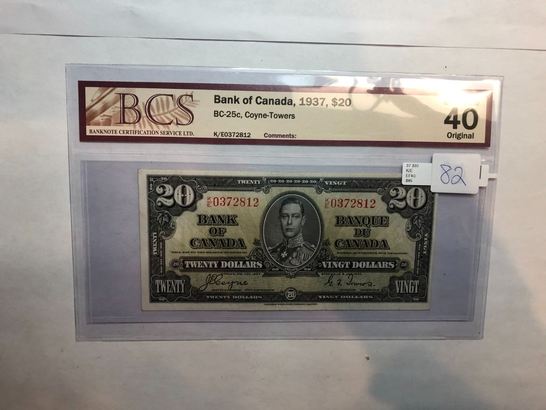 1937 Canadian $20 Bill BC-25c, Coyne-Towers, EF-40