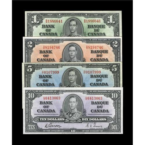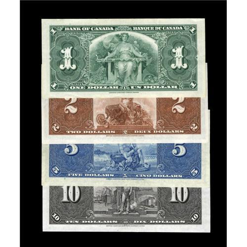 <B>1937 Canadian Grouping</B></I> including BC-21c $1 <B>VF;</B></I> BC-22c $2 <B>AU;</B></I> BC-23b $5 <B>XF-AU;</B></I> and BC-24b $10 <B>Choice CU.</B></I> <BR><BR><B>Important n