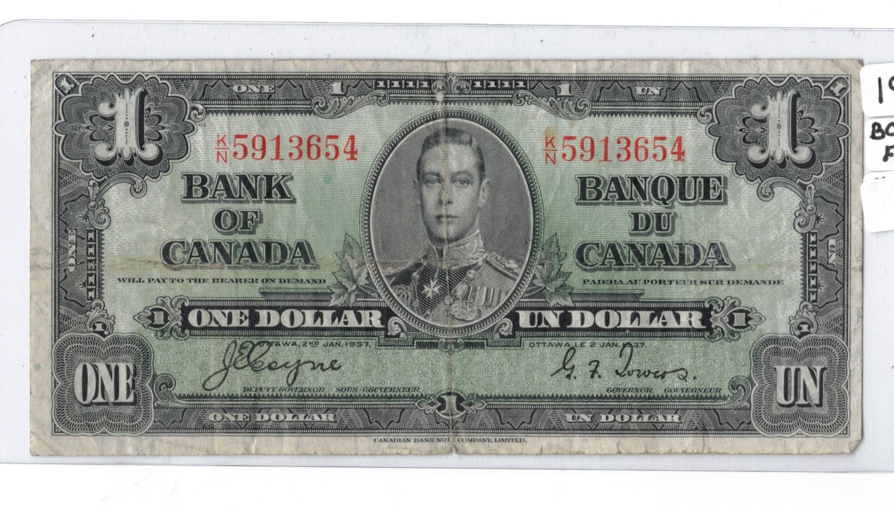 1937 Canadian One Dollar Bank Note