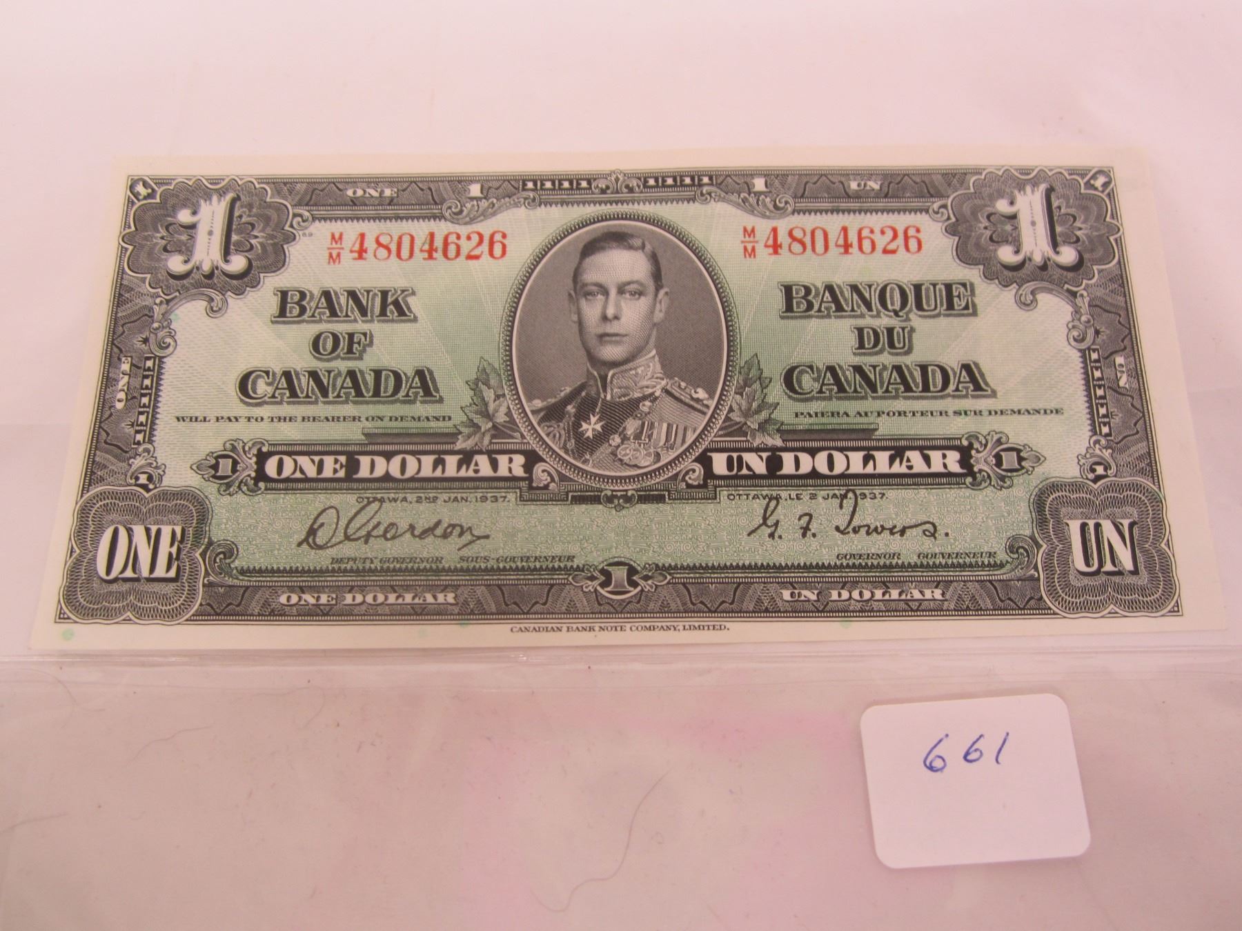 1937 Canadian One Dollar Bill Gordon and Towers Uncirculated